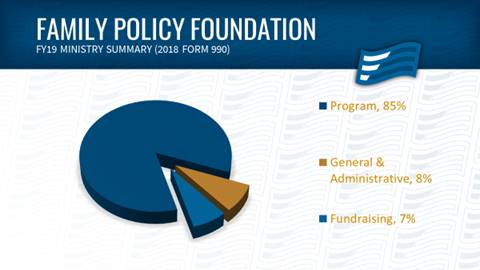 Family Policy Alliance is dedicated to the defense of moral values and the family. We realize that people are donating to our organization to defend the family, faith and freedom in this great nation. We also realize that it is our responsibility to use these precious gifts, that represent sacrifices from loving and concerned people, passionately and wisely to advance morality and family values as defined by biblical principles.