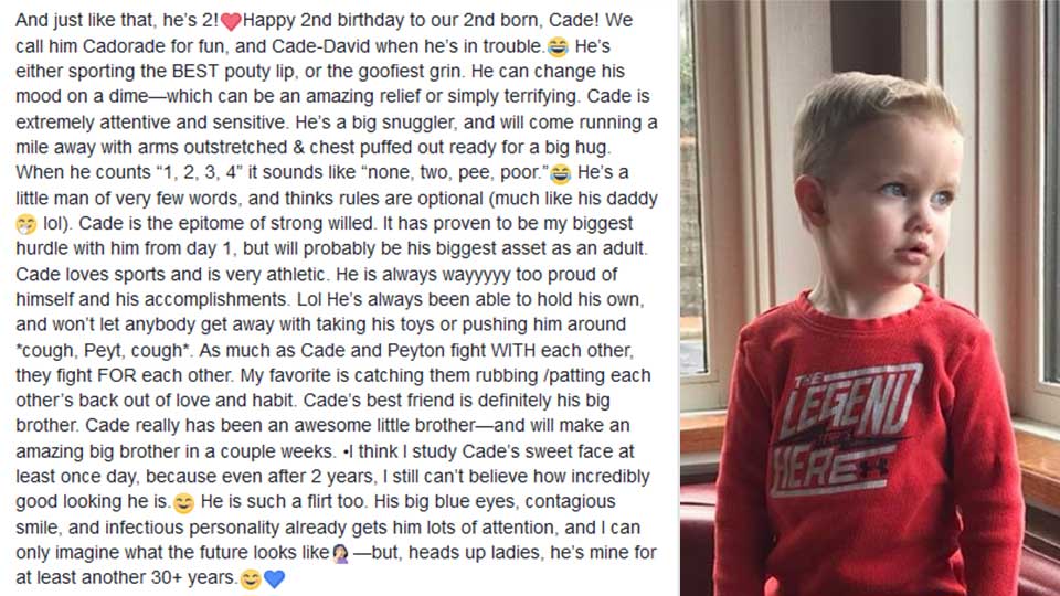This week, I enjoyed celebrating the birthday of one of my best buddies: my now two-year-old son, Cade. Words cannot describe how much light, joy, and laughter that boy has brought to my heart. Here is what my sweet wife wrote on his birthday: