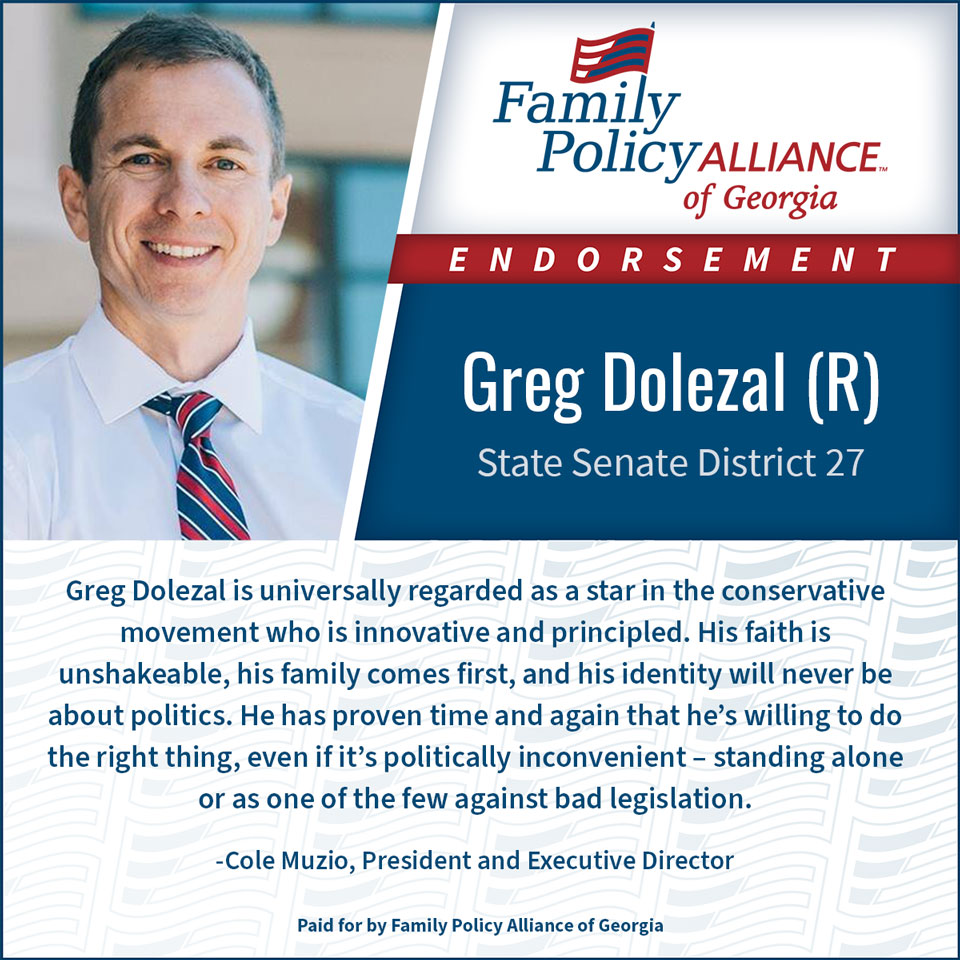 It didn’t take Greg Dolezal long to make a BIG impact. In just one term, Greg has emerged as one of brightest leaders and most reliable conservatives under the Gold Dome.