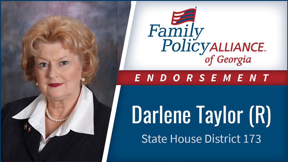 As one of the co-sponsors of the Heartbeat Bill – and someone who gave a stirring speech in favor of its passage – Darlene Taylor is a strong advocate for our values. She fights for life, for freedom, for more opportunity, for lower taxes, and for a thriving economy. She’s been a driving force behind making Georgia #1 to do business, and she’s a forceful voice for what matters in South Georgia. You could not ask for a better advocate than Darlene!