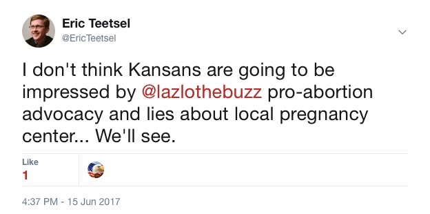 First, call The Buzz and tell them you don’t appreciate their abortion advocacy and the lies they told about a nonprofit organization trying to help women in crisis. Tell them they lost a listener. Their main number is (913) 744-3600 or the online contact form is here.