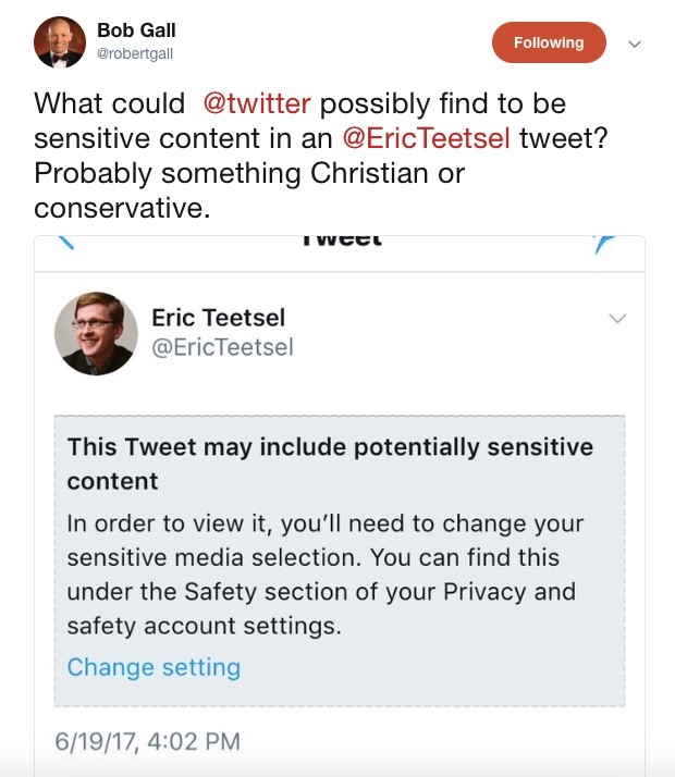 Thankfully, Twitter is there to police such objectionable content.