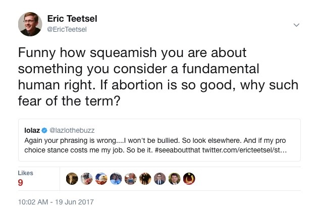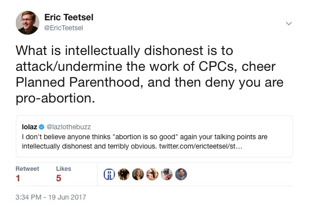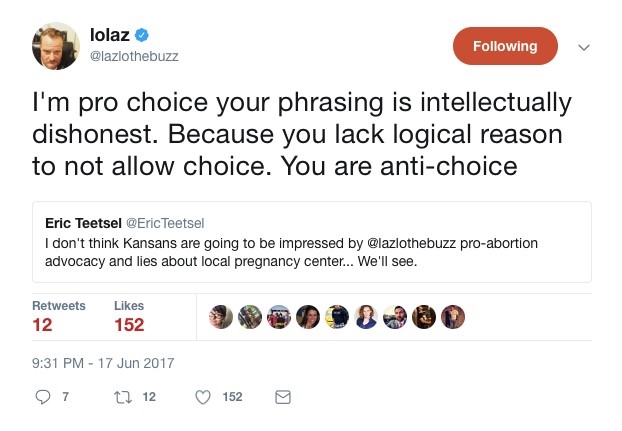 In a debate about abortion, crisis pregnancy centers, and the wisdom of making our public airwaves the battleground, Lazlo focused his reaction on my word choice. Why would someone so proud of his abortion advocacy be so mad about being described as an abortion advocate?