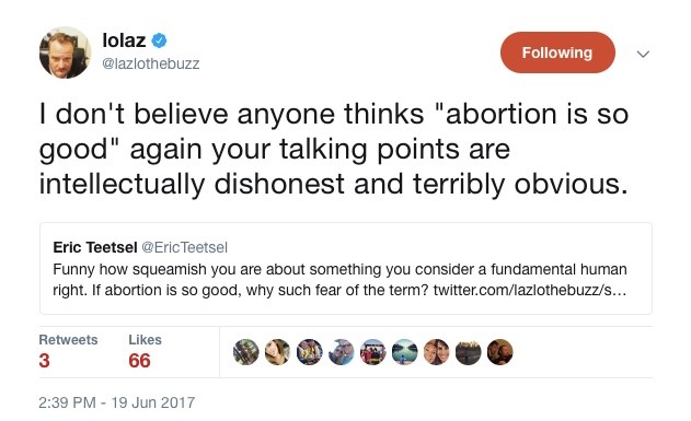 Recently, a Kansas state senator compared abortion to having your tonsils removed. Can you imagine Lazlo having such a strong, negative reaction to be described as “pro-tonsillectomy?”
