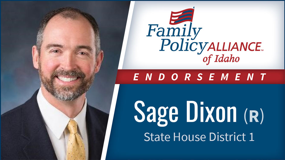 Family Policy Alliance of Idaho® is excited to endorse Rep. Sage Dixon in his reelection campaign for House District 1, Seat B. We’re honored to have Rep. Dixon as an alumnus of the Family Policy Foundation’s Statesmen Academy and we are proud to stand behind him as he serves with excellence in the Idaho State House of Representatives.